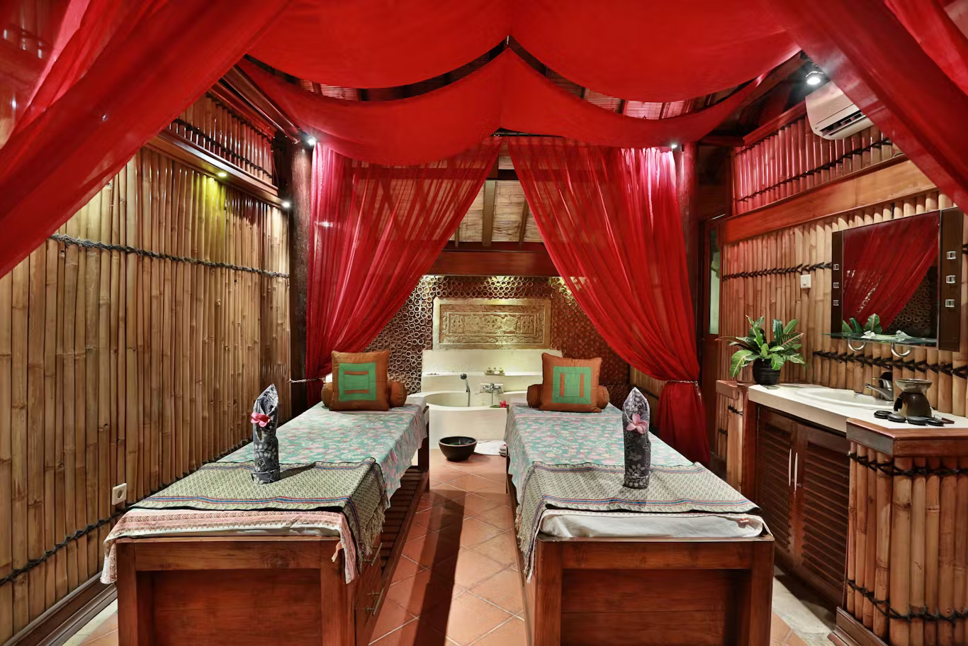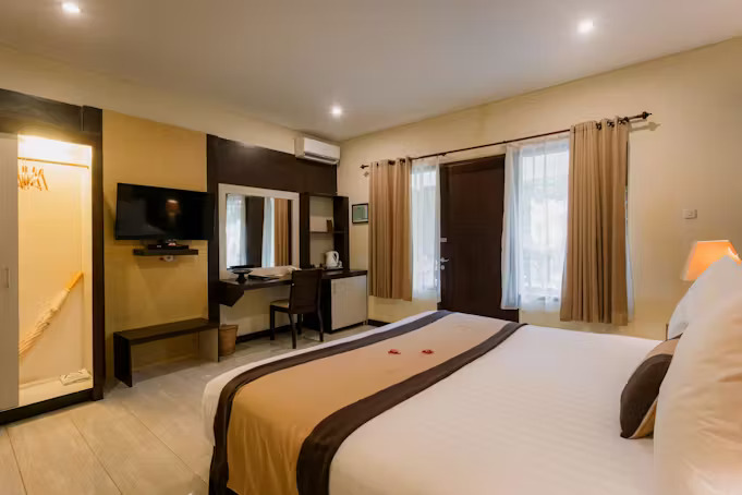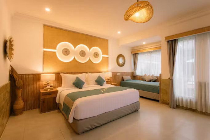 The convertible Deluxe Ombak Rooms are perfect for those traveling in groups or families. Each room is equipped with a double bed or twin bed arrangement, an indoor day bed that is easily converted into an extra bed, and comes with interconnecting options. The open-air bathroom maintains the unique island feel.